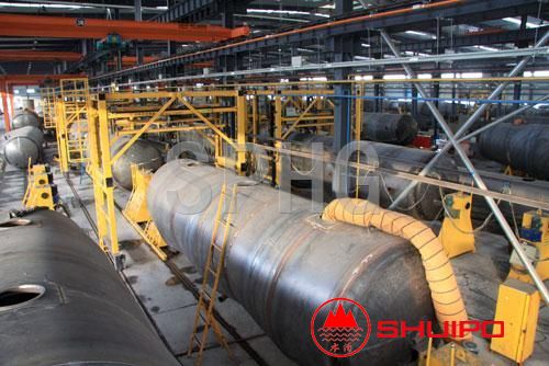 罐體生產(chǎn)線(xiàn)從鋼板下料、板材銑邊、板材對(duì)接、卷筒、整形、組裝、焊接、成型等先進(jìn)的制造工藝和各工序自動(dòng)化制造裝備;開(kāi)發(fā)一套遠(yuǎn)程集中控制系統(tǒng),實(shí)現(xiàn)制造工藝編制、生產(chǎn)設(shè)計(jì)安排、生產(chǎn)過(guò)程監(jiān)控管理等一體化控制。