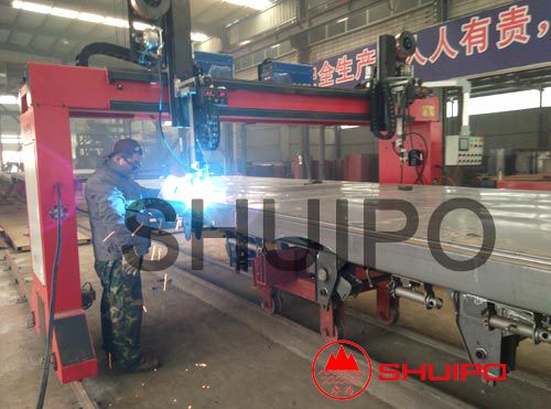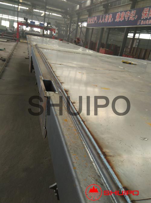 工作中的半掛車(chē)底板自動(dòng)焊接機(jī)(激光底板焊接機(jī))