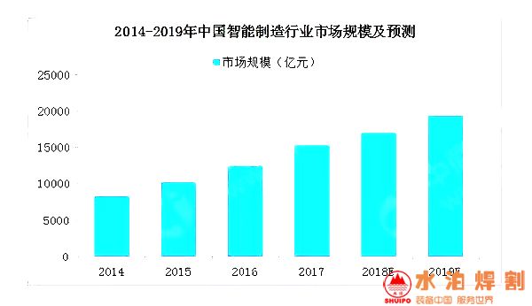 在國家政策推動(dòng),制造業(yè)技術(shù)轉(zhuǎn)型升級(jí)等背景下,中國智能制造產(chǎn)業(yè)發(fā)展迅速,對(duì)產(chǎn)業(yè)發(fā)展和分工格局帶來深刻影響。數(shù)據(jù)顯示,2017年中國智能制造行業(yè)市場(chǎng)規(guī)模為15150億元,增長(zhǎng)率為22.6%,伴隨著技術(shù)的逐漸完善,應(yīng)用產(chǎn)業(yè)的不斷拓展,市場(chǎng)規(guī)模將持續(xù)增長(zhǎng),預(yù)計(jì)2019年市場(chǎng)規(guī)模將超19000億元。